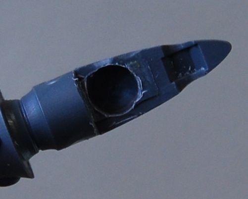Drill out a wider and deeper hole than you need on the guns. The reason for this is that we'll make a greenstuff setting, and we need room to work. I used a 3/16 drill bit to make the hole.