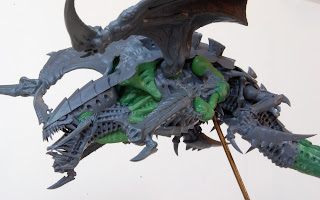 This has nothing to do with the conversion, but I head swapped two of the crew members with Plague Monk heads. It's run by Plague Monks, they wouldn't wear gas masks. They embrace the plague! I had to shave the neck a bit to make it fit, and it's slightly larger than it should be but I don't care. It's a walking rat-man, realism is kind of a moot point. I left the armored crew member with a gas mask, I figured he's the Skryre representative who does all the complicated runnings of the machine.